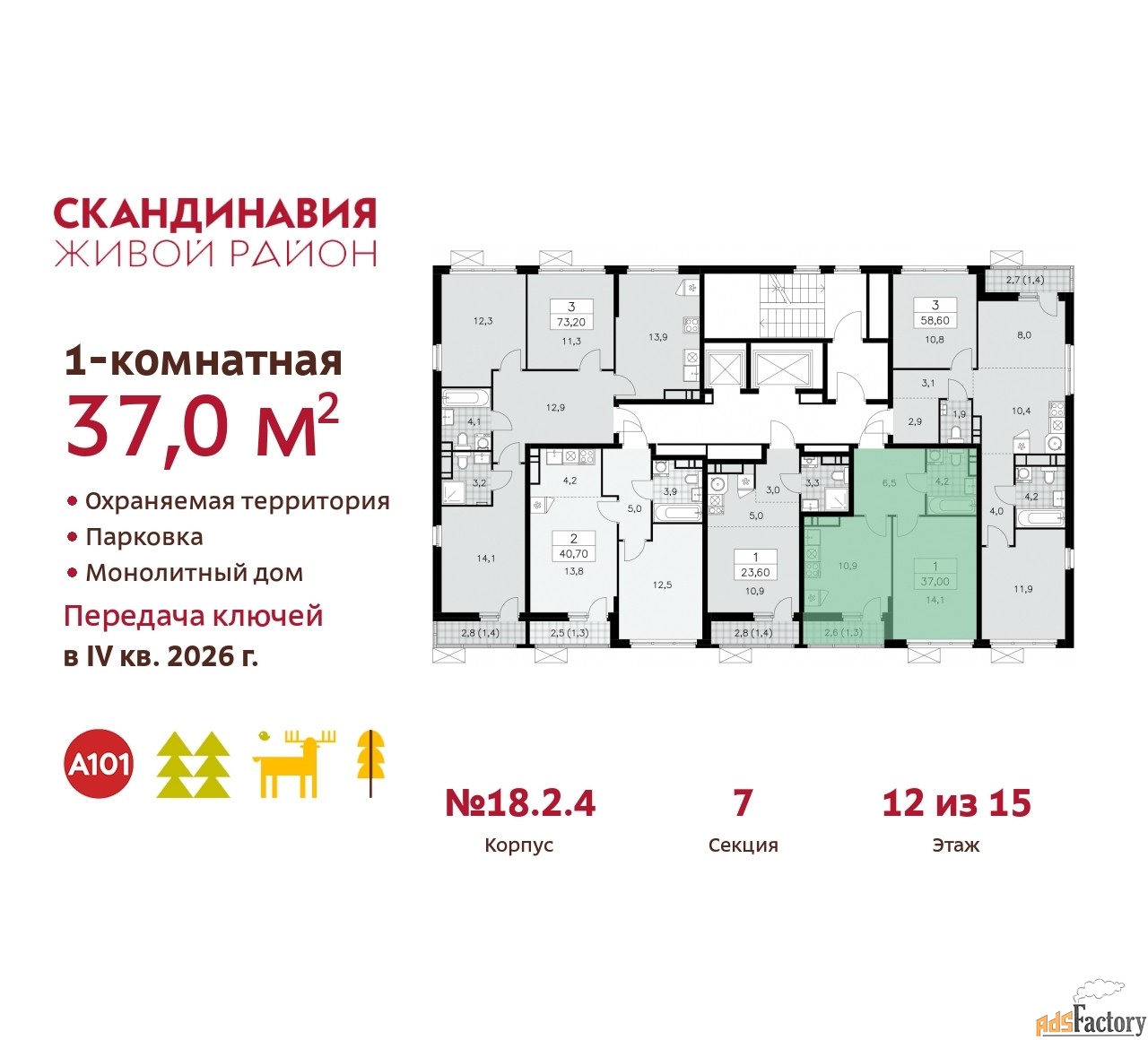 Артикул квартиры по базе застройщика 23К-18.2.4-533.