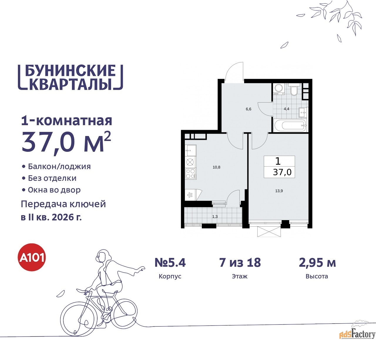 Дом монолитный, черырехподъездный, переменной этажности, от 9 до 18 этажей. Квартира находится в 1-й секции высотой 18 этажей в корпусе 5.4. На этаже 5 квартир. В подъезде 1 пассажирский и 1 грузовой лифт. Начало строительства - 4 квартал 2023 года. Окончание строительства - 2 квартал 2026 года. Оформление сделки по договору долевого участия.