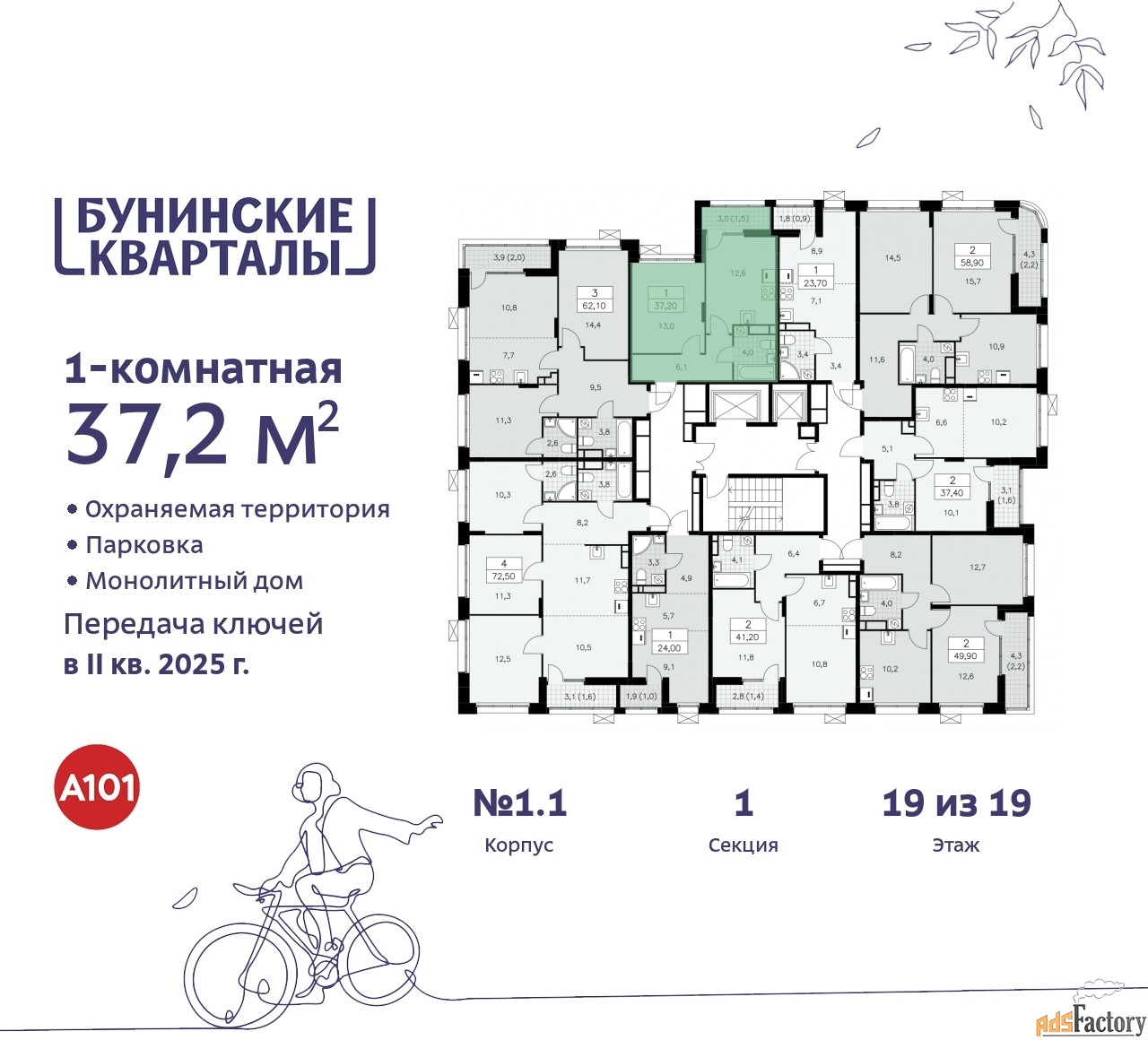 Квартира находится в корпусе 1.1. Дом монолитный, одноподъездный, высотой 19 этажей. На этаже 9 квартир. В подъезде 1 пассажирский и 1 грузовой лифт. Начало строительства - 3 квартал 2022 года. В настоящее время строительство завершено, дом сдан в 1 квартале 2025 года. Оформление сделки по договору купли-продажи.