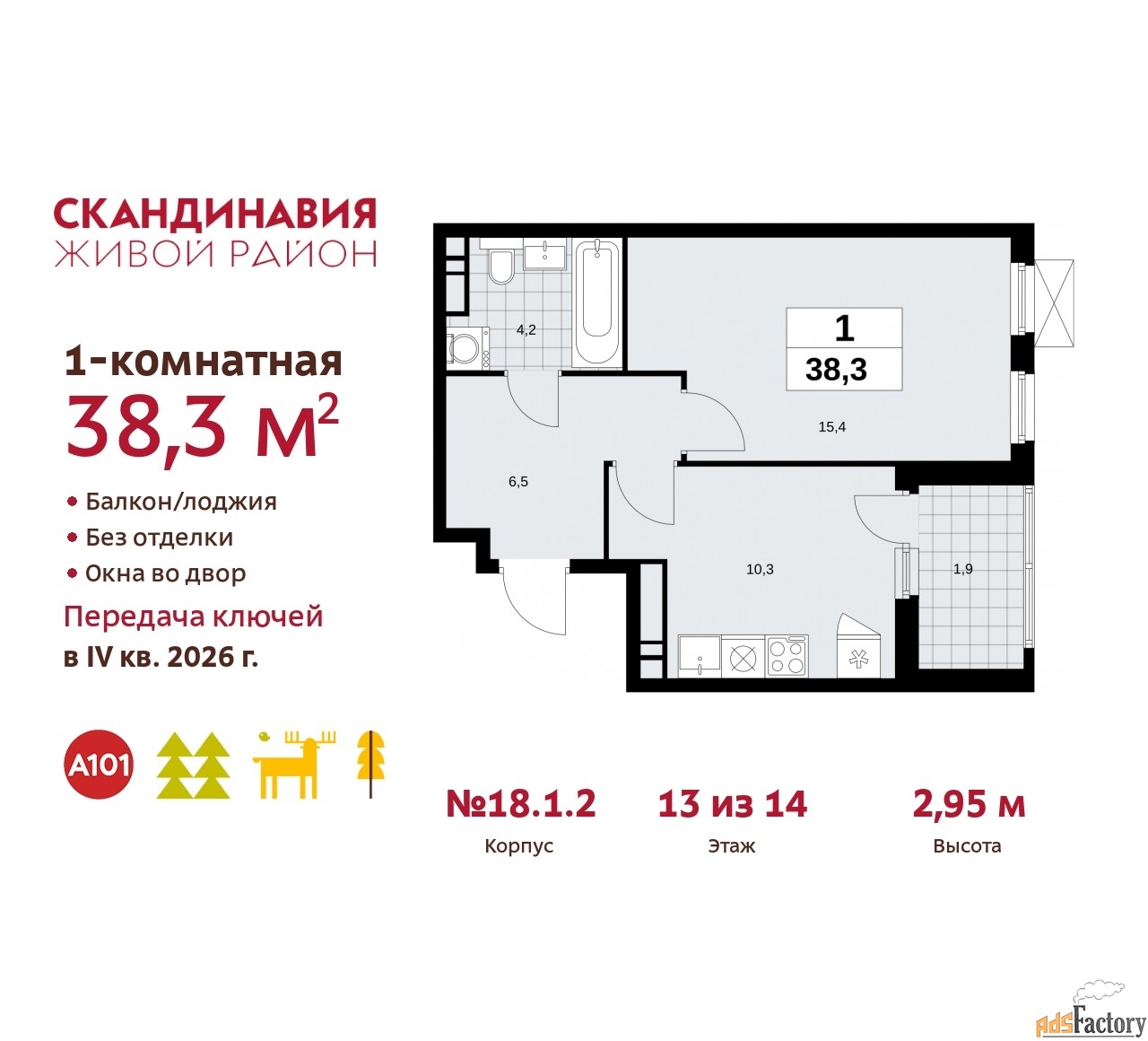 Квартира находится в корпусе 2.18.1.2. Дом монолитный, одноподъездный, высотой 14 этажей. На этаже 10 квартир. В подъезде 1 пассажирский и 1 грузовой лифт. Начало строительства - 1 квартал 2024 года. Окончание строительства - 4 квартал 2026 года. Оформление сделки по договору долевого участия.