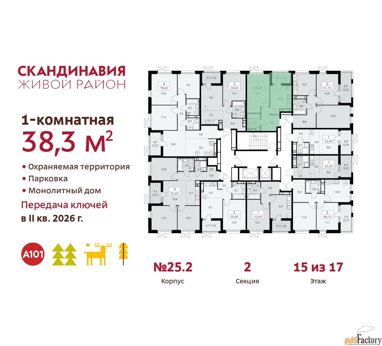 | Общая площадь (кв.м) | 38.3 |