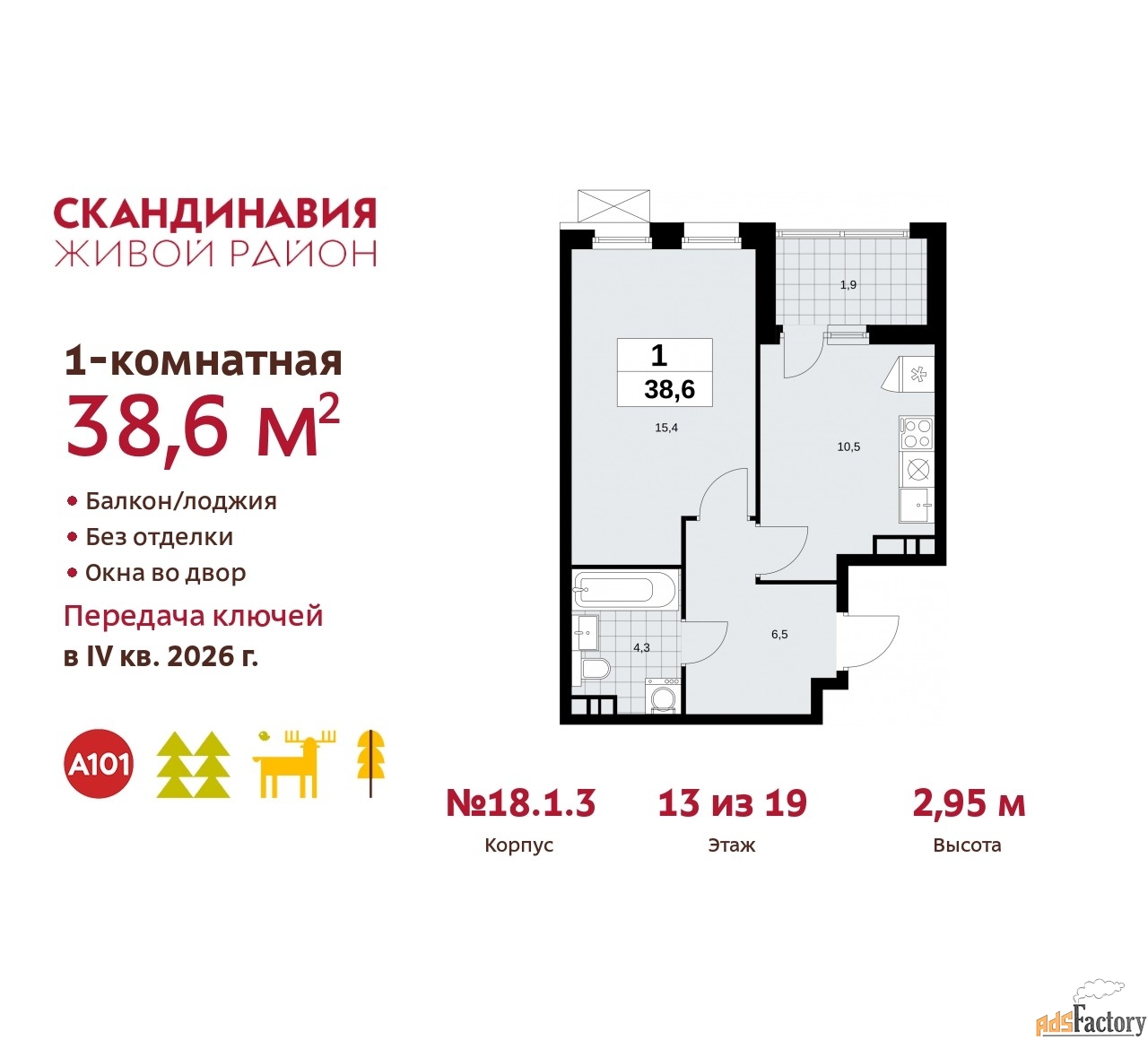 Квартира находится в корпусе 2.18.1.3. Дом монолитный, одноподъездный, высотой 19 этажей. На этаже 10 квартир. В подъезде 1 пассажирский и 1 грузовой лифт. Начало строительства - 1 квартал 2024 года. Окончание строительства - 4 квартал 2026 года. Оформление сделки по договору долевого участия.