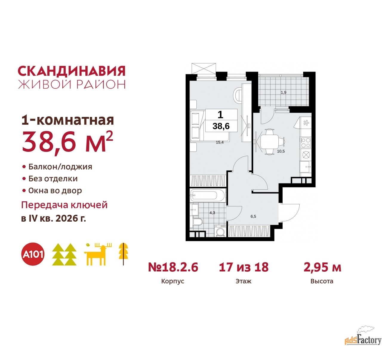 | Общая площадь (кв.м) | 38.6 |