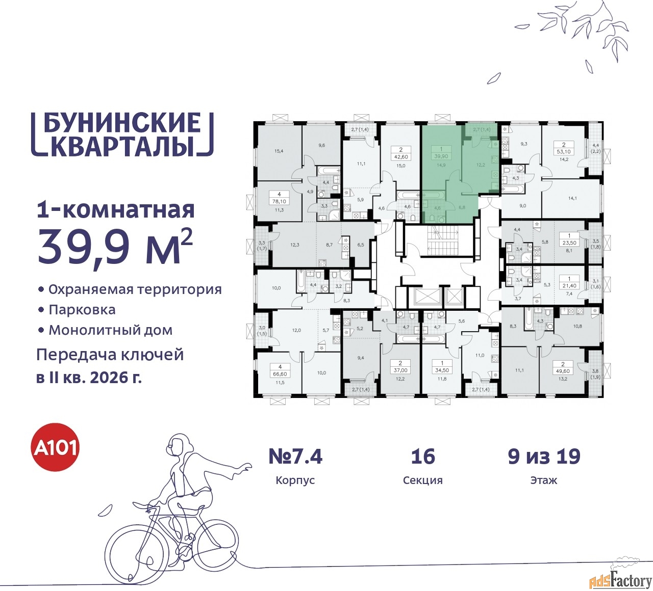 Квартира находится в корпусе 7.4. Дом монолитный, одноподъездный, высотой 19 этажей. На этаже 10 квартир. В подъезде 1 пассажирский и 1 грузовой лифт. Начало строительства - 4 квартал 2023 года. Окончание строительства - 2 квартал 2026 года. Оформление сделки по договору долевого участия.