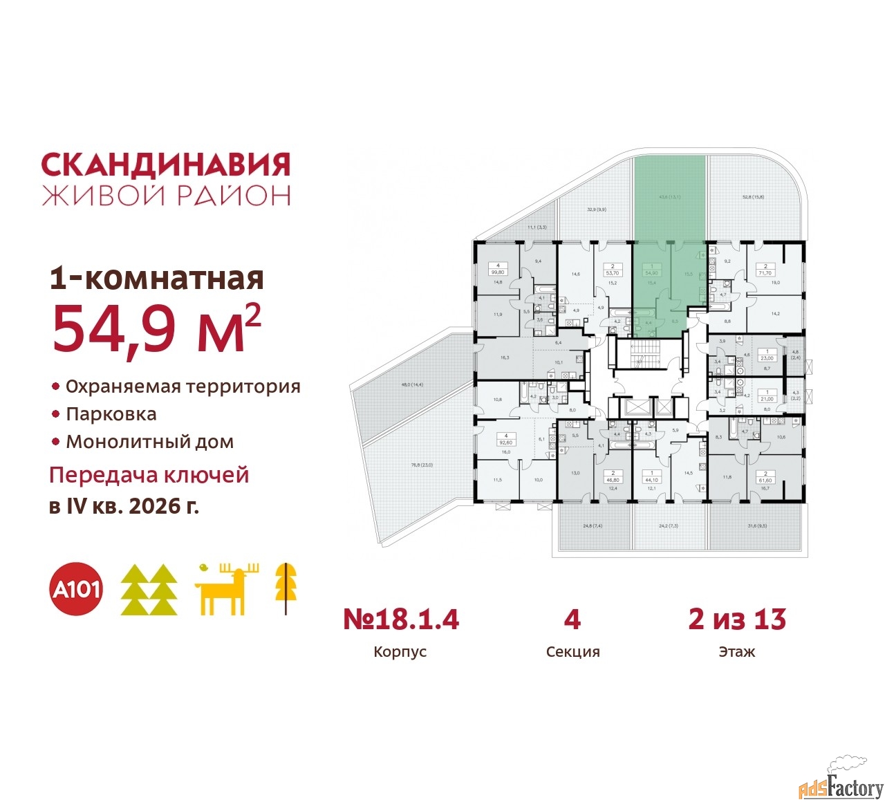 Квартира находится в корпусе 2.18.1.4. Дом монолитный, одноподъездный, высотой 13 этажей. На этаже 10 квартир. В подъезде 1 пассажирский и 1 грузовой лифт. Начало строительства - 1 квартал 2024 года. Окончание строительства - 4 квартал 2026 года. Оформление сделки по договору долевого участия.