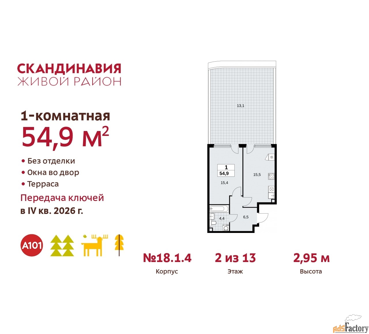 В пешей доступности находятся школы, детские сады, магазины, кафе, поликлиника, спортивная школа, отделение почты, дом культуры и пр. объекты инфраструктуры. ЖК «Скандинавия» находится в 15-минутной доступности до 3 веток метро. Автомобилисты могут воспользоваться выездом на Калужское шоссе (4,7 км). (AQID02350922)