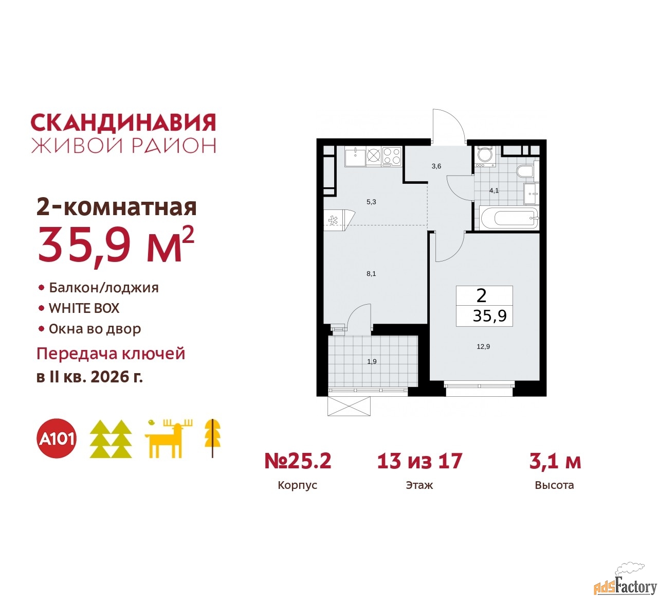 В пешей доступности находятся школы, детские сады, магазины, кафе, поликлиника, спортивная школа, отделение почты, дом культуры и пр. объекты инфраструктуры. ЖК «Скандинавия» находится в 15-минутной доступности до 3 веток метро. Автомобилисты могут воспользоваться выездом на Калужское шоссе (4,7 км). (AQID02283568)
