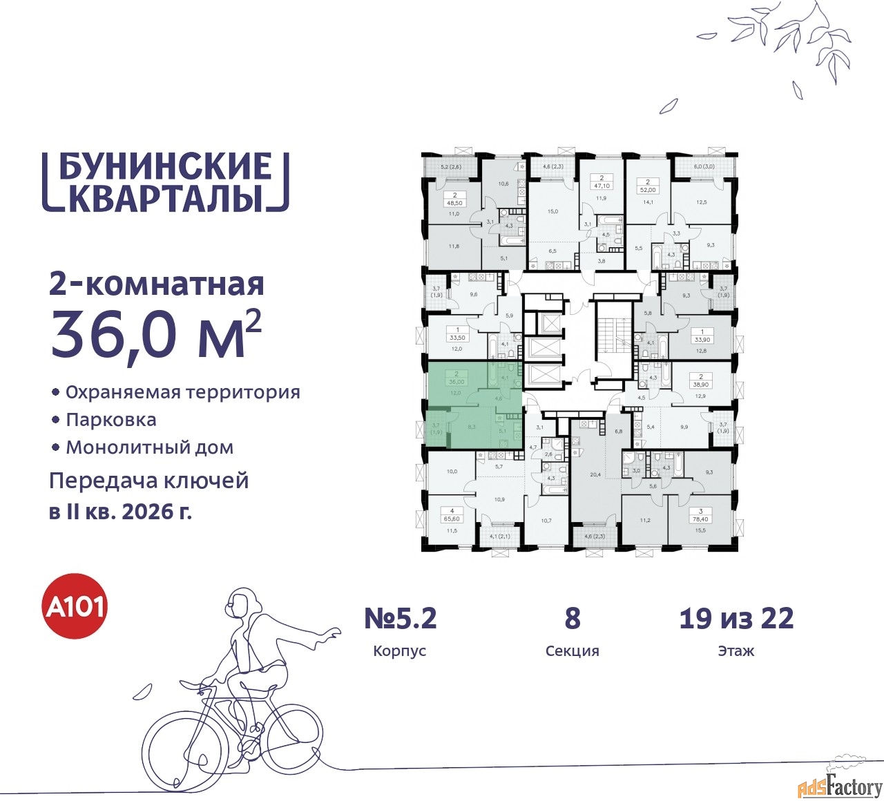 Квартира находится в корпусе 5.2. Дом монолитный, одноподъездный, высотой 22 этажа. На этаже 9 квартир. В подъезде 1 пассажирский и 2 грузовых лифта. Начало строительства - 4 квартал 2023 года. Окончание строительства - 2 квартал 2026 года. Оформление сделки по договору долевого участия.