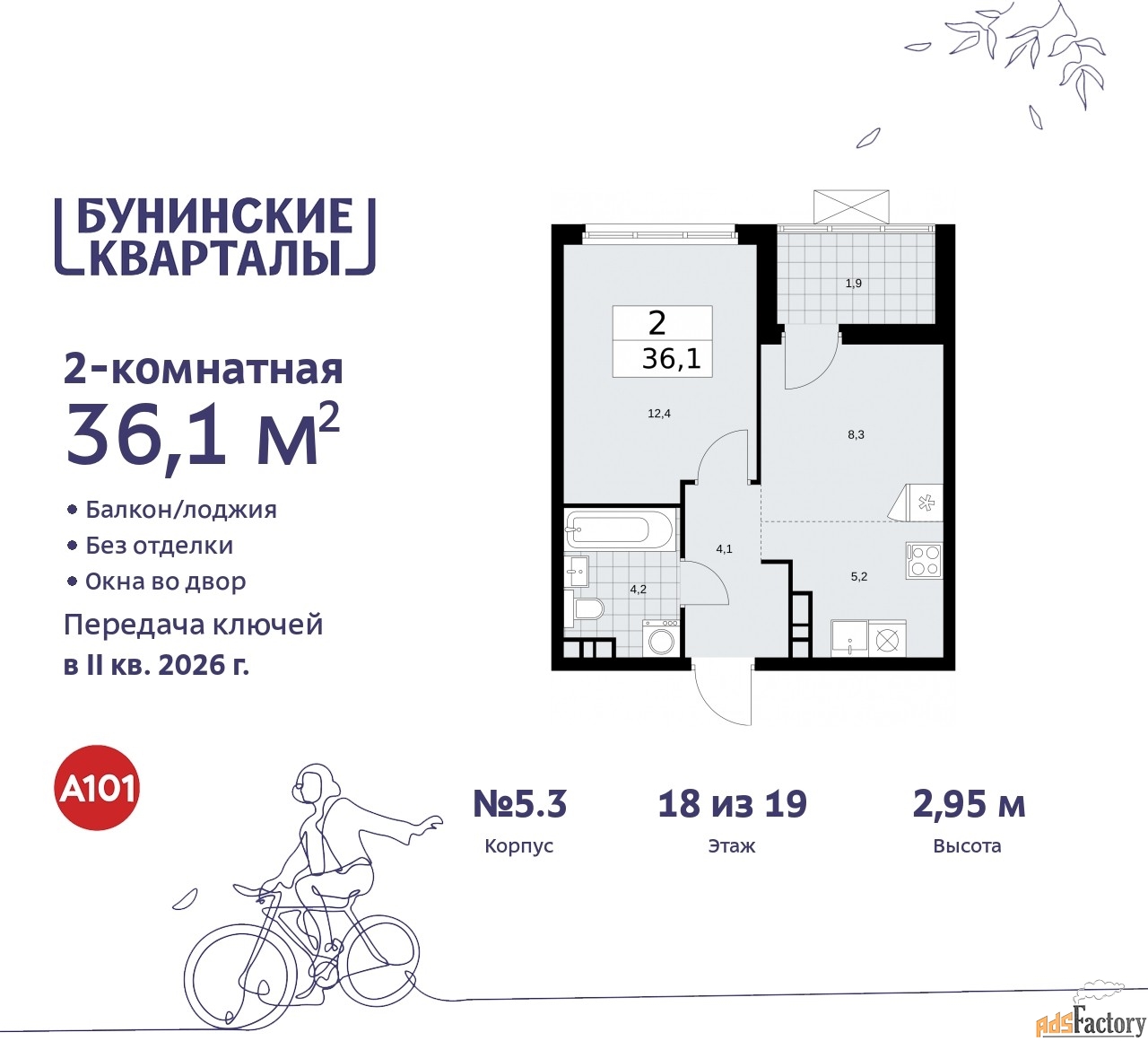 Квартира находится в корпусе 5.3. Дом монолитный, одноподъездный, высотой 19 этажей. На этаже 10 квартир. В подъезде 1 пассажирский и 1 грузовой лифт. Начало строительства - 4 квартал 2023 года. Окончание строительства - 2 квартал 2026 года. Оформление сделки по договору долевого участия.