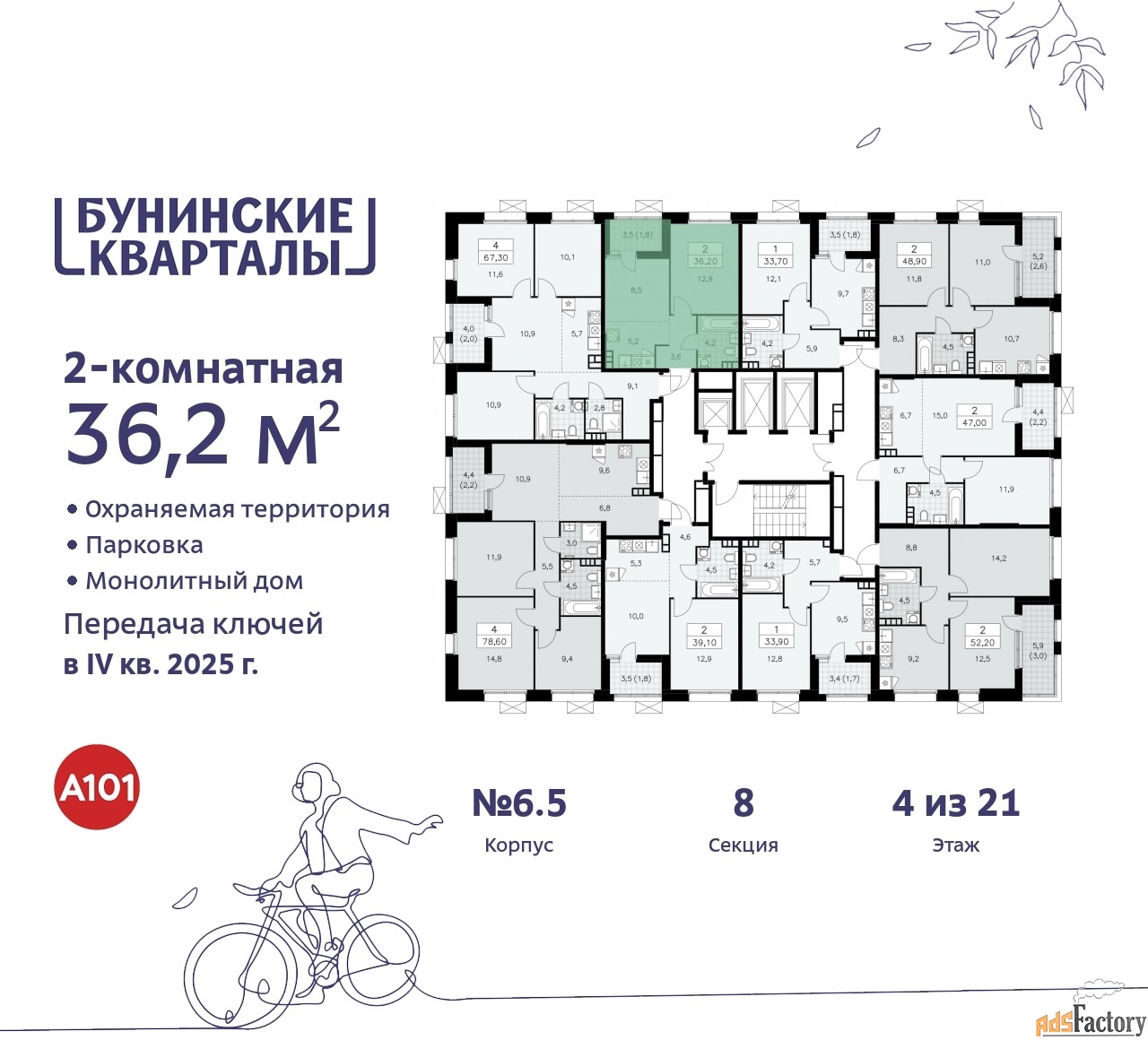 Квартира находится в корпусе 6.5. Дом монолитный, одноподъездный, высотой 21 этаж. На этаже 9 квартир. В подъезде 1 пассажирский и 2 грузовых лифта. Начало строительства - 3 квартал 2023 года. Окончание строительства - 2 квартал 2026 года. Оформление сделки по договору долевого участия.