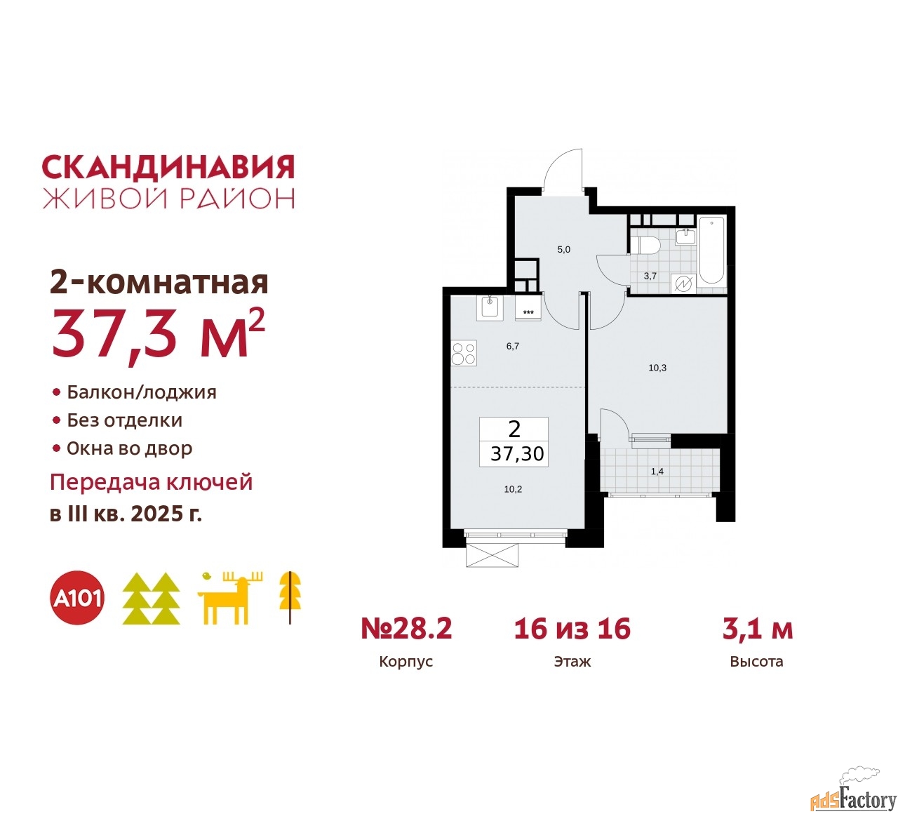 Квартира находится в корпусе 28.2. Дом монолитный, одноподъездный, высотой 16 этажей. На этаже 9 квартир. В подъезде 1 пассажирский и 1 грузовой лифт. Начало строительства - 2 квартал 2023 года. Окончание строительства - 4 квартал 2025 года. Оформление сделки по договору долевого участия.