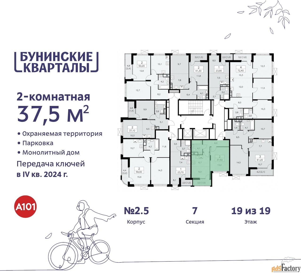 Квартира находится в корпусе 2.5. Дом монолитный, одноподъездный, высотой 19 этажей. На этаже 9 квартир. В подъезде 1 пассажирский и 2 грузовых лифта. Начало строительства - 4 квартал 2022 года. Строительство завершено, дом сдан в 1 квартале 2025 года. Оформление сделки по договору купли-продажи.