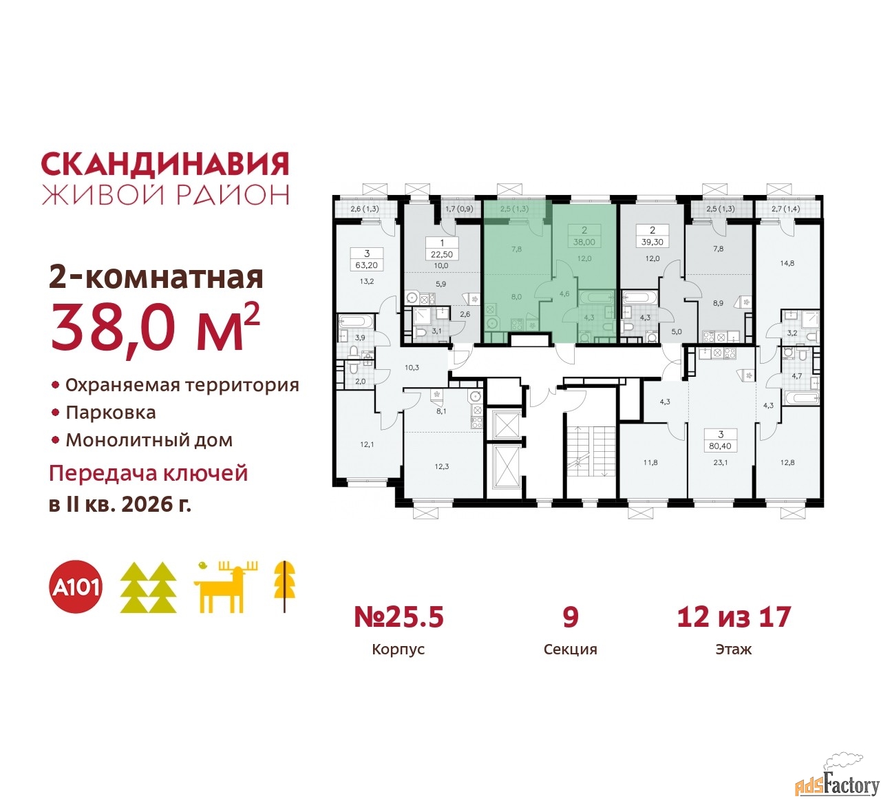 Артикул квартиры по базе застройщика 24К-25.5-808.