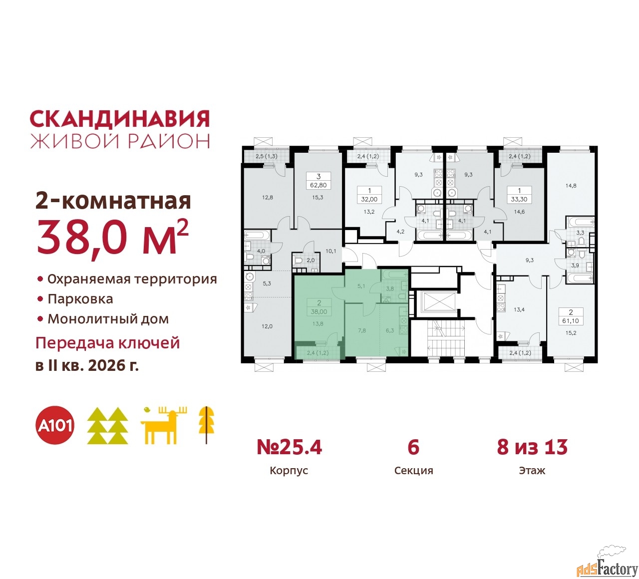 Часть корпусов микрорайона «Скандинавия» уже заселены, полностью сформирована вся инфраструктура: больницы, детские сады, школы, магазины. Отличительная особенность жилого комплекса - невысокие дома, просторные дворы без машин, комфортная благоустроенная придомовая территория. (AQID02284163)