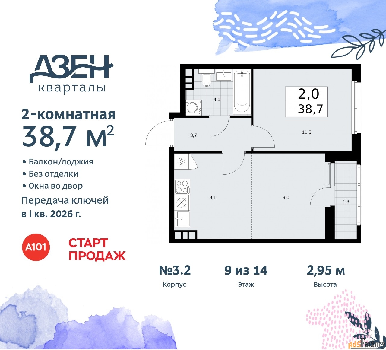 | Общая площадь (кв.м) | 38.7 |