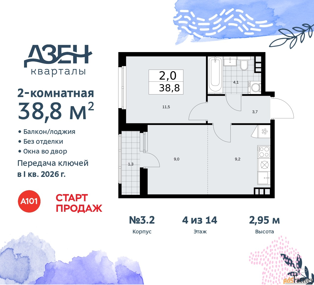 | Общая площадь (кв.м) | 38.8 |