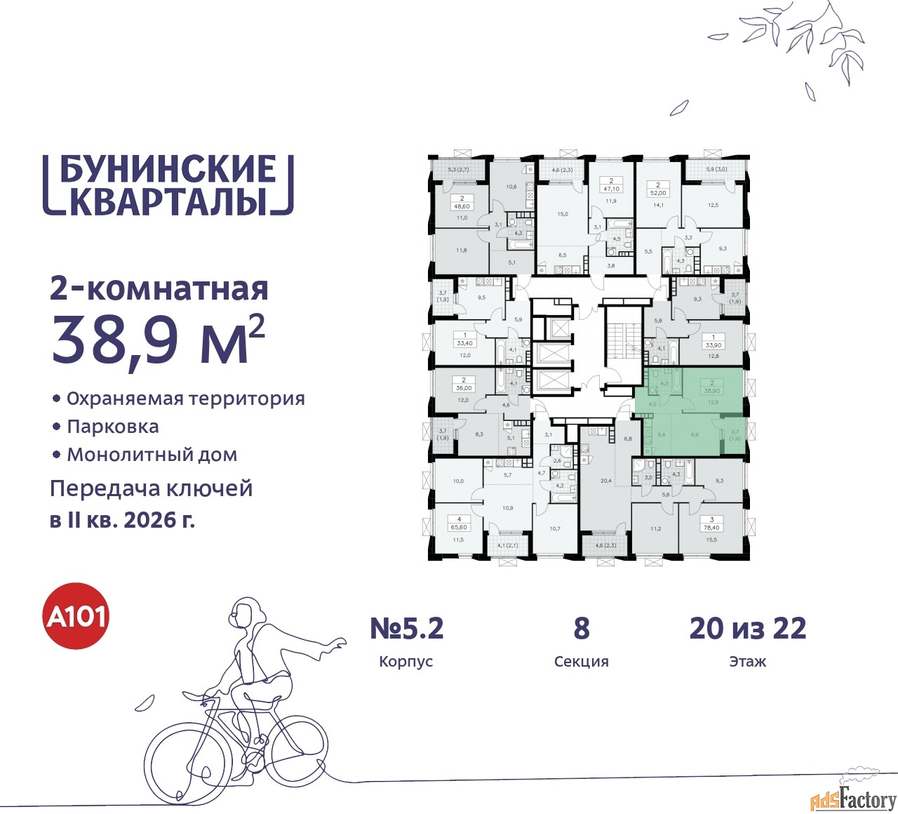 | Общая площадь (кв.м) | 38.9 |