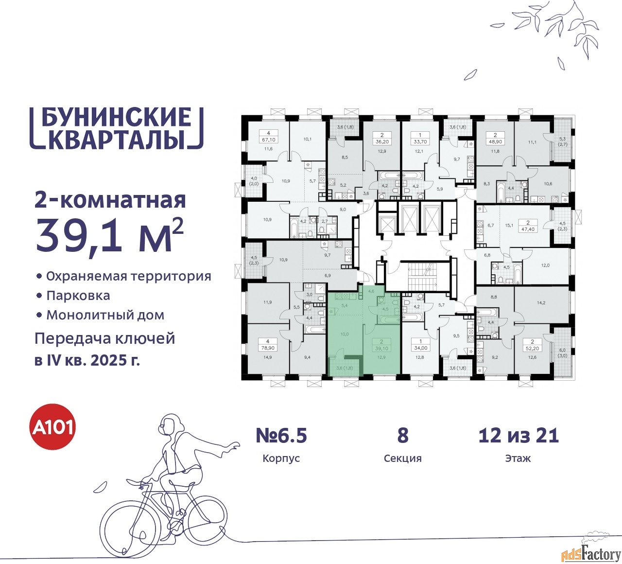 Квартира находится в корпусе 6.5. Дом монолитный, одноподъездный, высотой 21 этаж. На этаже 9 квартир. В подъезде 1 пассажирский и 2 грузовых лифта. Начало строительства - 3 квартал 2023 года. Окончание строительства - 2 квартал 2026 года. Оформление сделки по договору долевого участия.