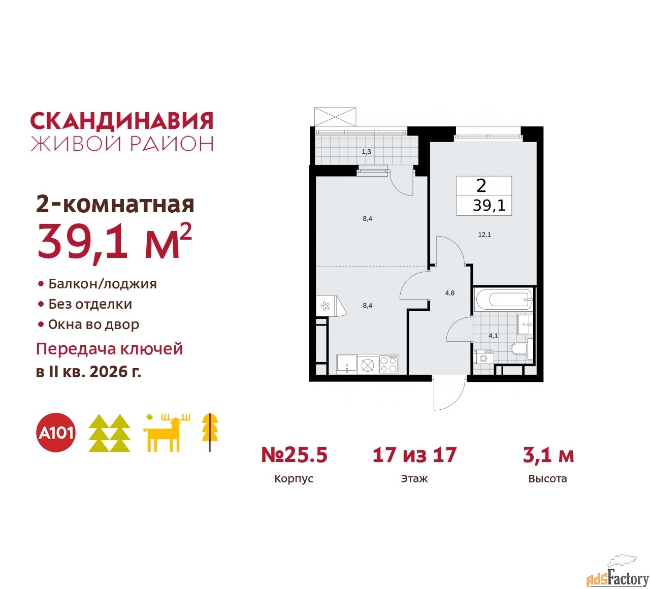 ЖК «Скандинавия» - один из проектов компании А101, известной своей надежностью. Жилой комплекс расположен на юго-западе Москвы в 6-ти километрах от МКАД в окружении Бутовского лесопарка, район Коммунарка. Рядом открылись новые станции метро.