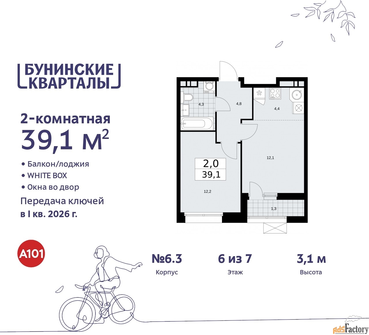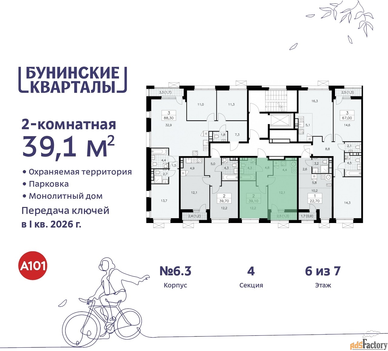 | Общая площадь (кв.м) | 39.1 |