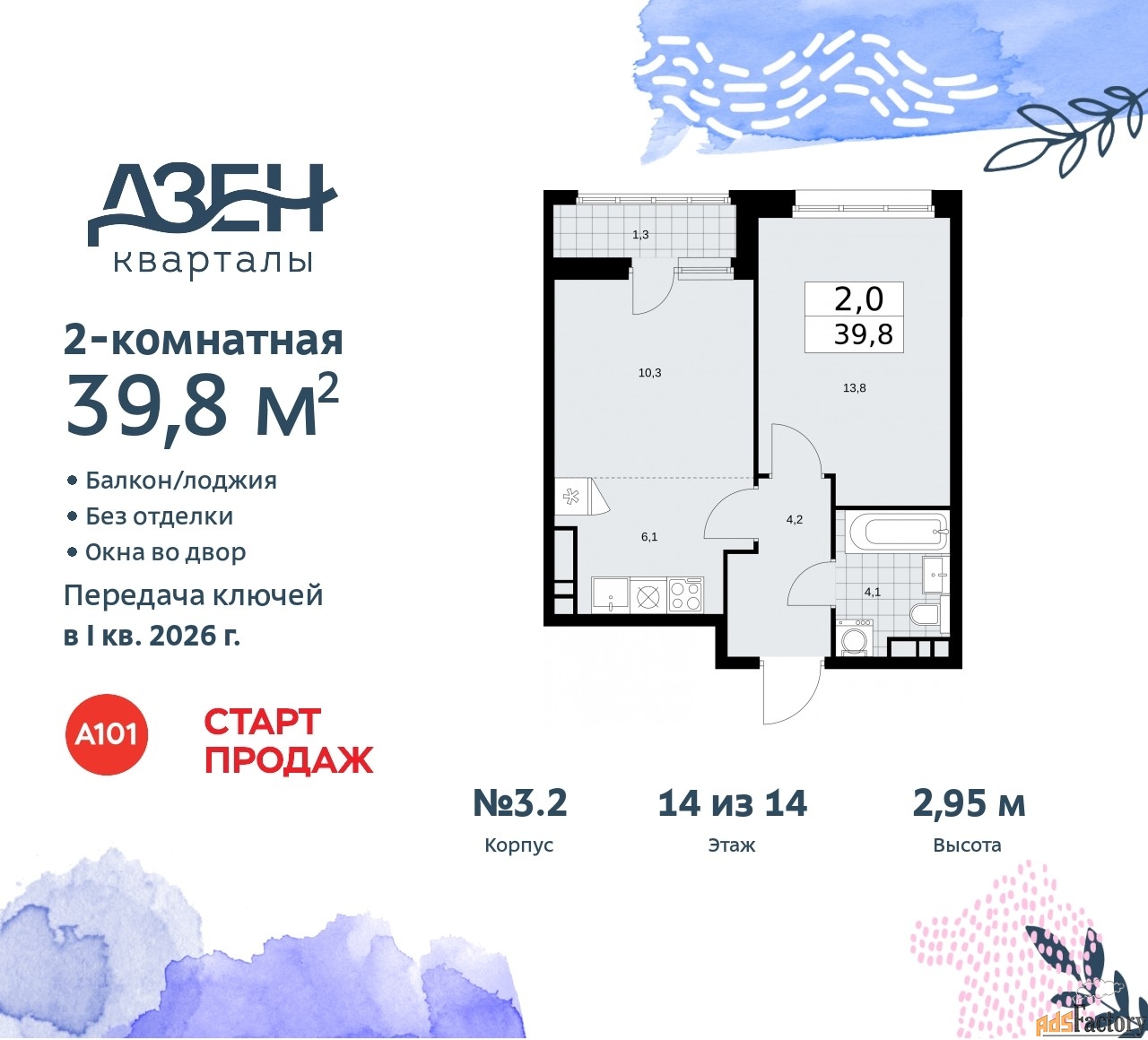 | Общая площадь (кв.м) | 39.8 |