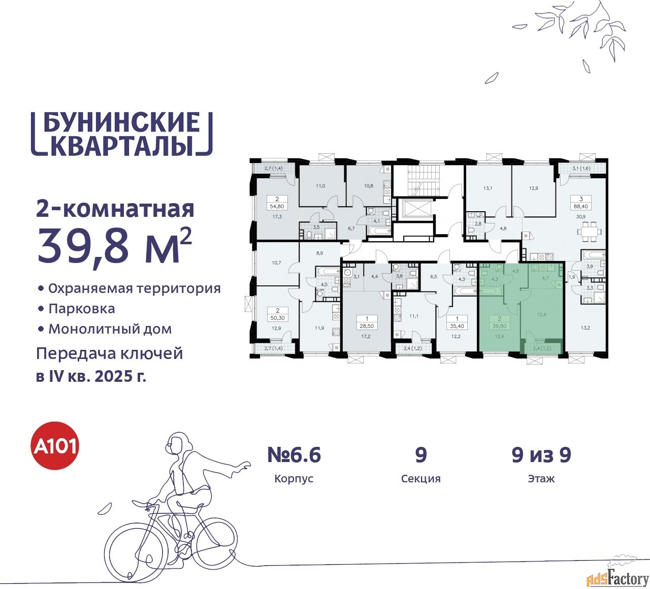 Дом монолитный, двухподъездный, высотой 9 этажей. Квартира находится в 1-й секции в корпусе бизнес-класса 6.6. На этаже 6 квартир. В подъезде 1 грузовой лифт. Начало строительства - 3 квартал 2023 года. Окончание строительства - 4 квартал 2025 года. Оформление сделки по договору долевого участия.
