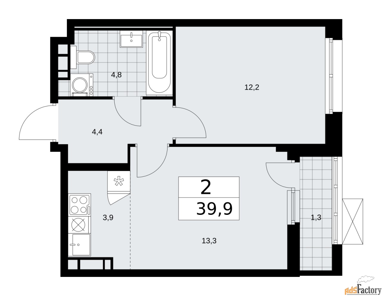 | Общая площадь (кв.м) | 39.9 |