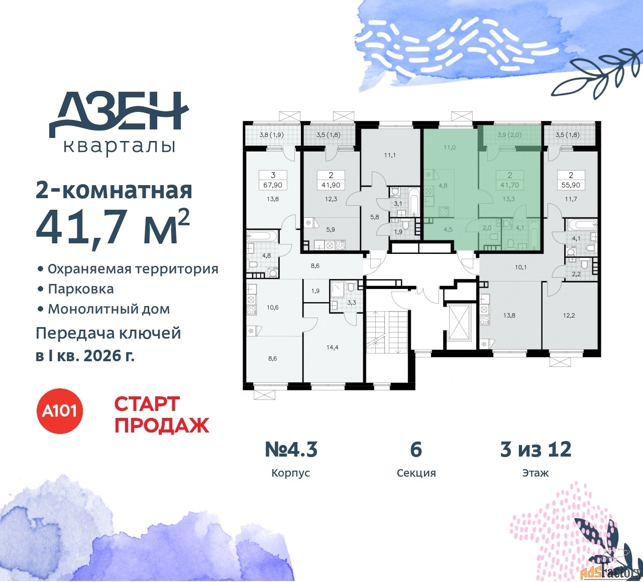 Артикул квартиры по базе застройщика 41К-4.3-329.