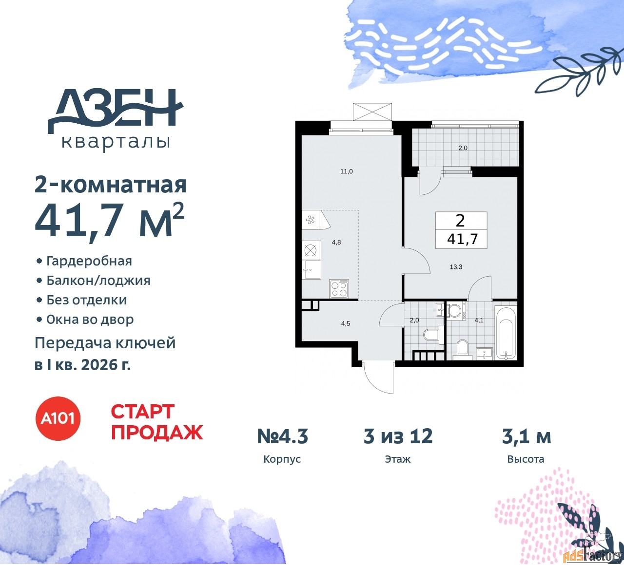 Артикул квартиры по базе застройщика 41К-4.3-329.