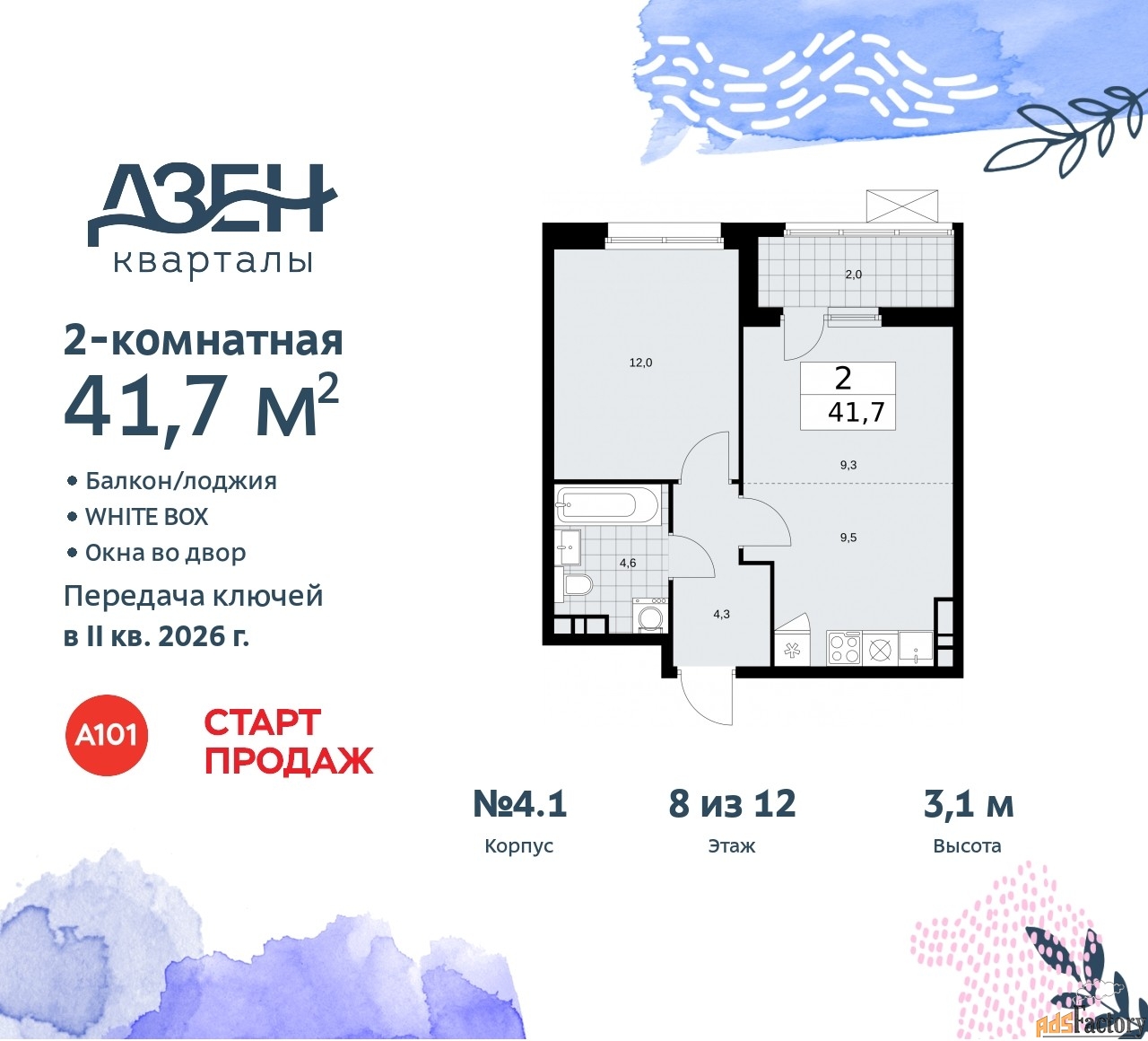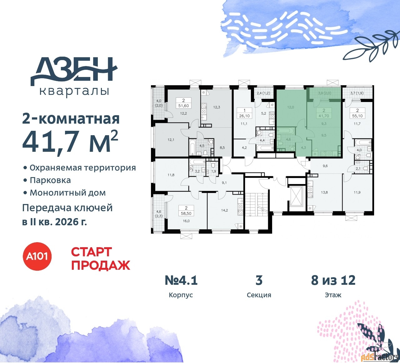 Артикул квартиры по базе застройщика 41К-4.1-121.