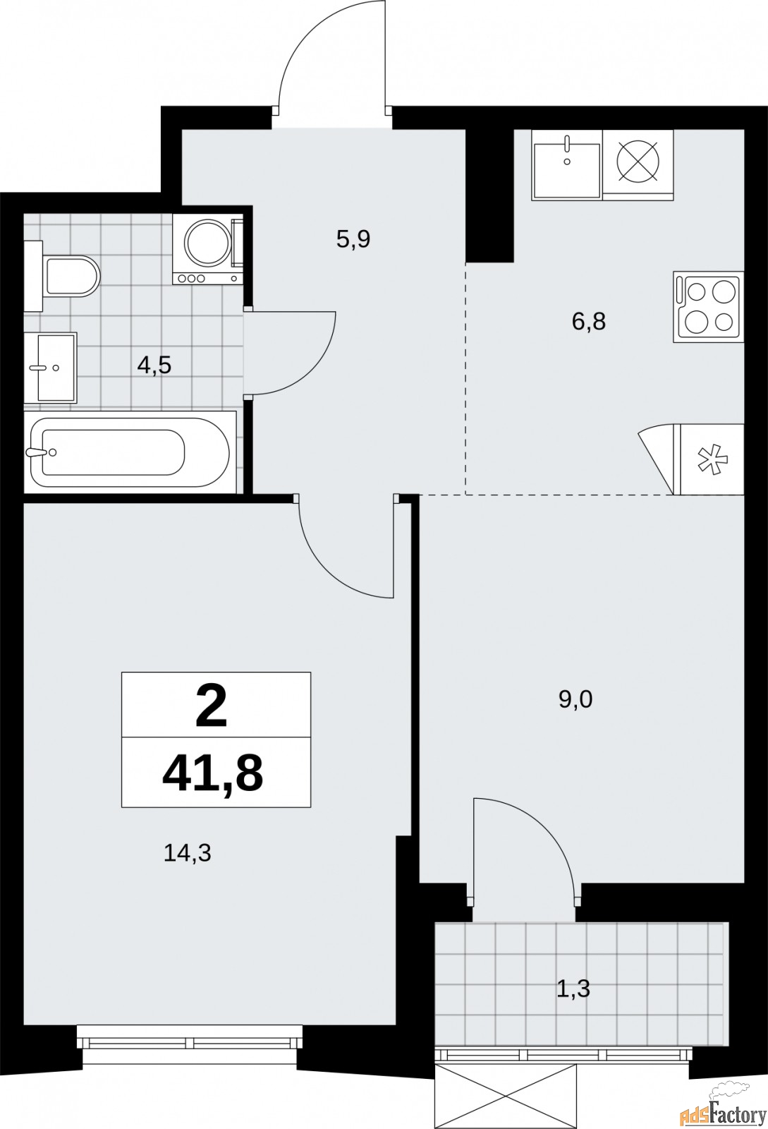 | Общая площадь (кв.м) | 41.8 |