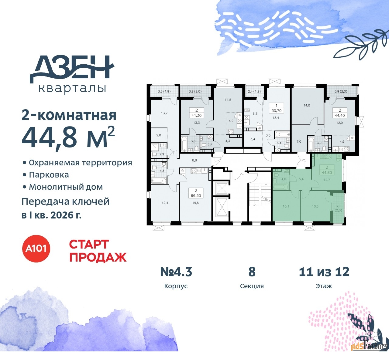 | Общая площадь (кв.м) | 44.8 |