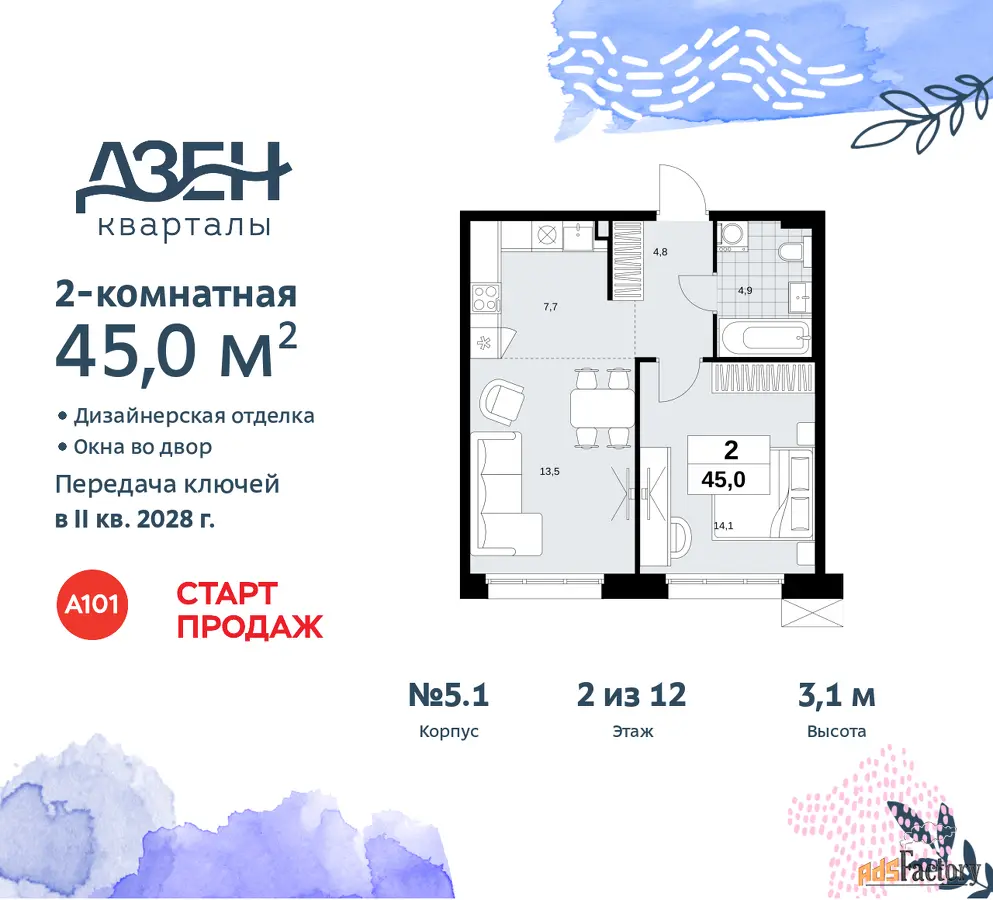 | Общая площадь (кв.м) | 45 |
