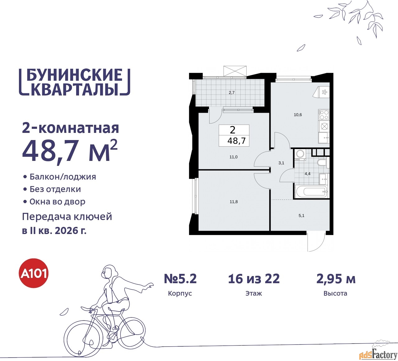 | Общая площадь (кв.м) | 48.7 |