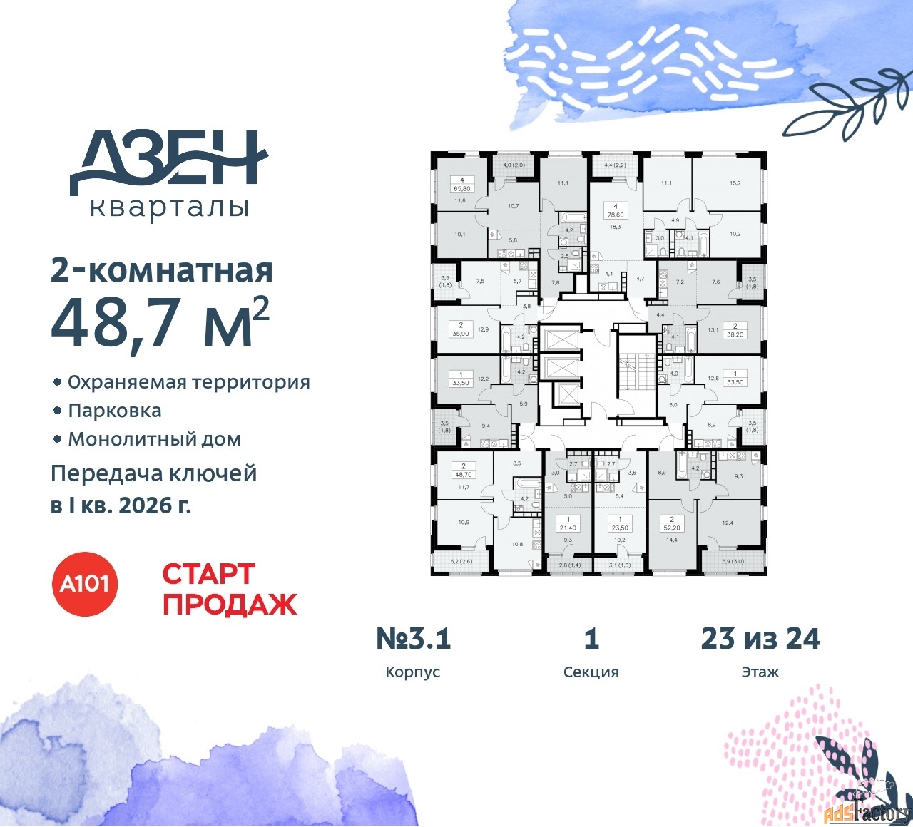 Артикул квартиры по базе застройщика 41К-3.1-219.
