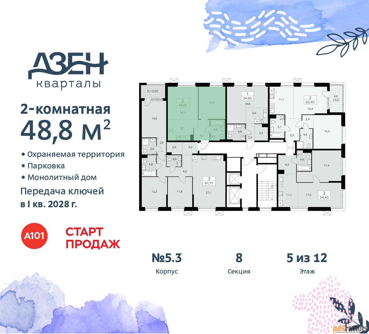 | Общая площадь (кв.м) | 48.8 |
