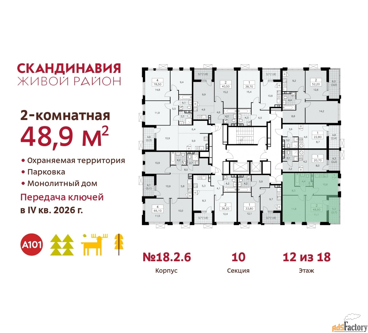 Квартира находится в корпусе 2.18.2.6. Дом монолитный, одноподъездный, высотой 18 этажей. На этаже 8 квартир. В подъезде 1 пассажирский и 1 грузовой лифт. Начало строительства - 1 квартал 2024 года. Окончание строительства - 4 квартал 2026 года. Оформление сделки по договору долевого участия.
