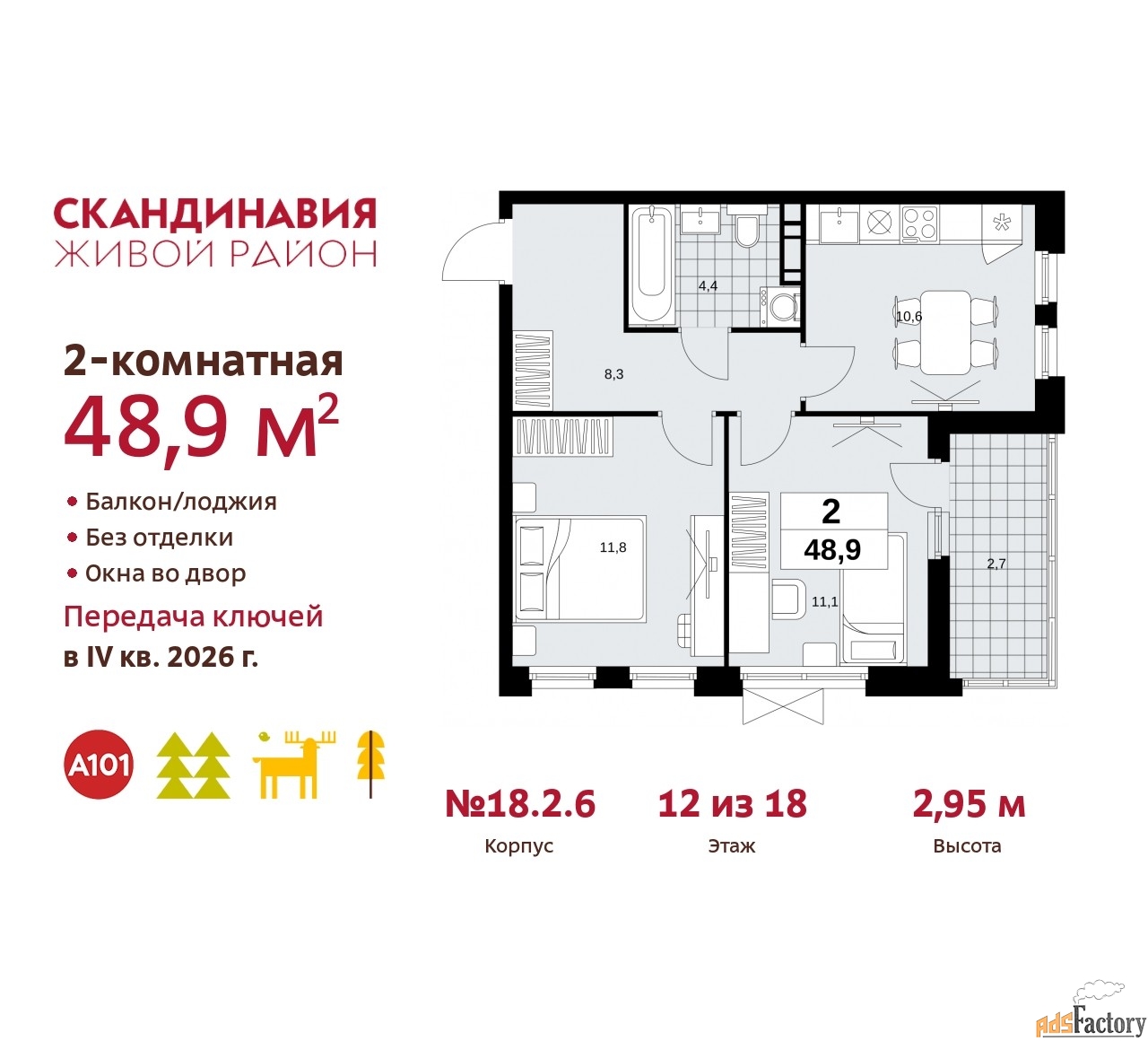 Часть корпусов микрорайона «Скандинавия» уже заселены, полностью сформирована вся инфраструктура: больницы, детские сады, школы, магазины. Отличительная особенность жилого комплекса - невысокие дома, просторные дворы без машин, комфортная благоустроенная придомовая территория. (AQID02351805)