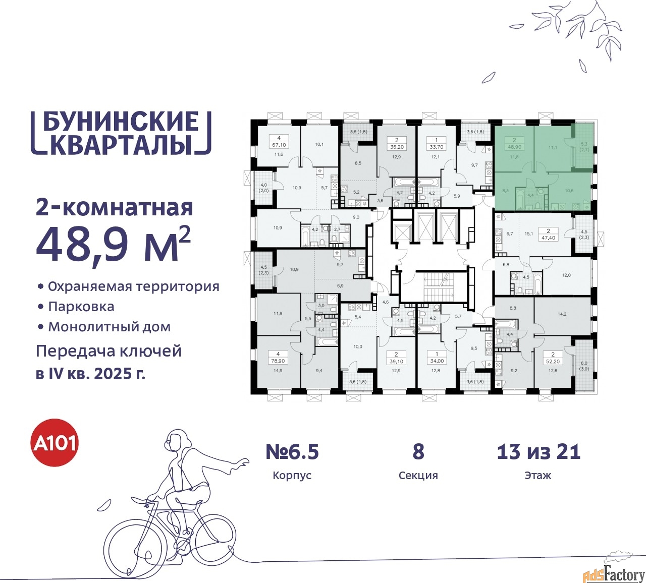 Квартира находится в корпусе 6.5. Дом монолитный, одноподъездный, высотой 21 этаж. На этаже 9 квартир. В подъезде 1 пассажирский и 2 грузовых лифта. Начало строительства - 3 квартал 2023 года. Окончание строительства - 4 квартал 2025 года. Оформление сделки по договору долевого участия.