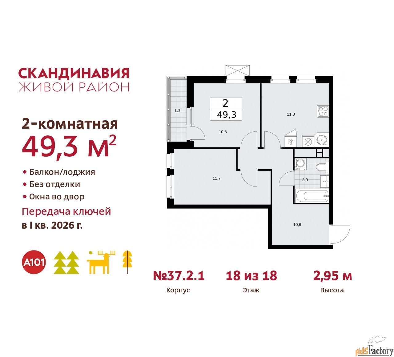Квартира находится в корпусе 37.2.1. Дом монолитный, одноподъездный, высотой 18 этажей. На этаже 11 квартир. В подъезде 2 грузовых лифта. Начало строительства - 3 квартал 2023 года. Окончание строительства - 1 квартал 2026 года. Оформление сделки по договору долевого участия.