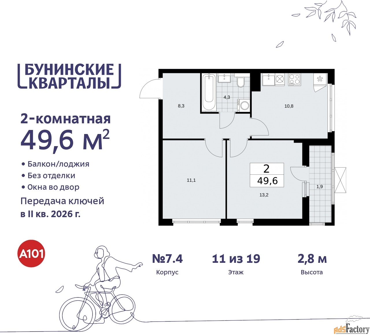 | Общая площадь (кв.м) | 49.6 |