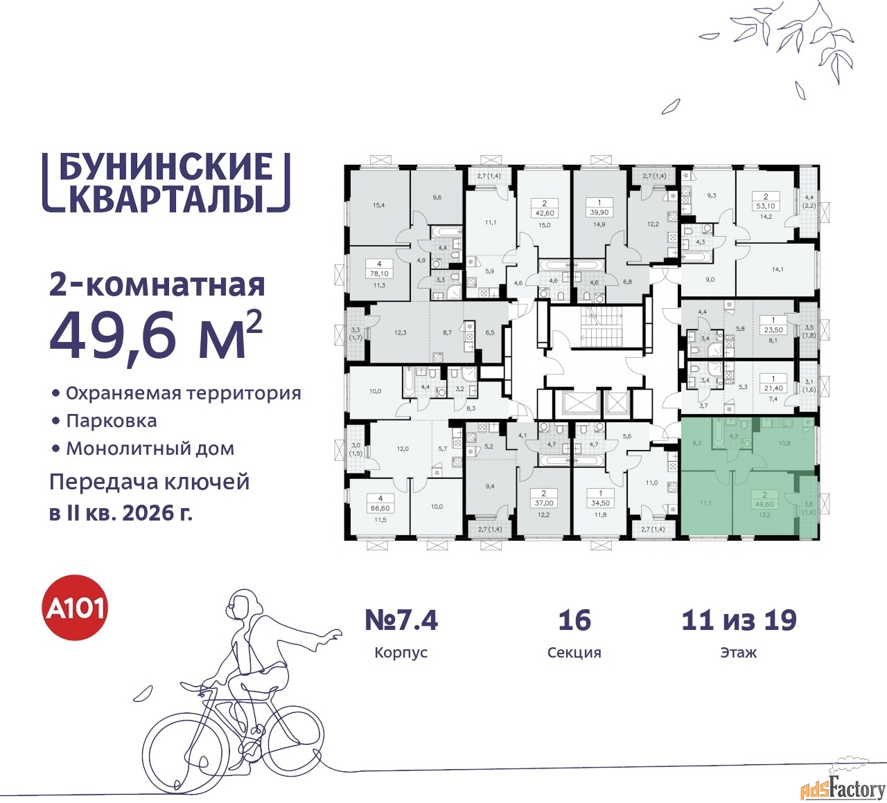 Квартира находится в корпусе 7.4. Дом монолитный, одноподъездный, высотой 19 этажей. На этаже 10 квартир. В подъезде 1 пассажирский и 1 грузовой лифт. Начало строительства - 4 квартал 2023 года. Окончание строительства - 2 квартал 2026 года. Оформление сделки по договору долевого участия.