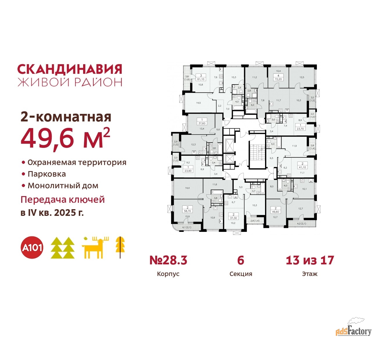 Квартира находится в корпусе 28.3. Дом монолитный, одноподъездный, высотой 17 этажей. На этаже 9 квартир. В подъезде 1 пассажирский и 1 грузовой лифт. Начало строительства - 2 квартал 2023 года. Окончание строительства - 4 квартал 2025 года. Оформление сделки по договору долевого участия.