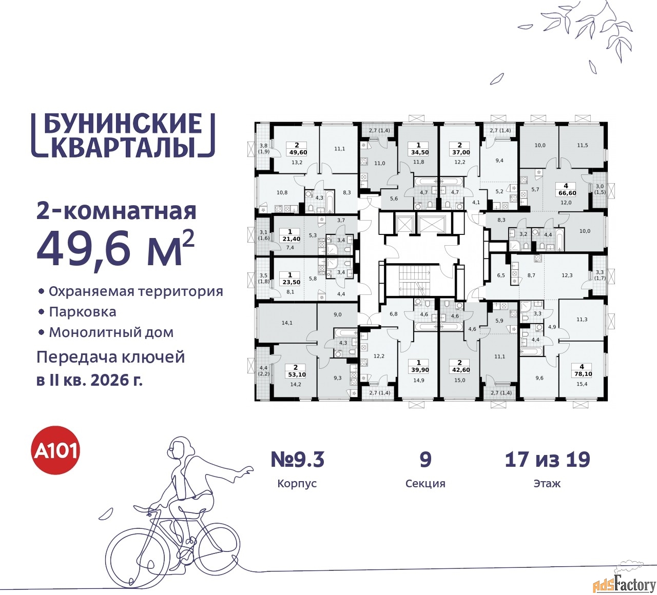 Квартира находится в корпусе 9.3. Дом монолитный, одноподъездный, высотой 19 этажей. На этаже 10 квартир. В подъезде 1 пассажирский и 1 грузовой лифт. Начало строительства - 4 квартал 2023 года. Окончание строительства - 2 квартал 2026 года. Оформление сделки по договору долевого участия.