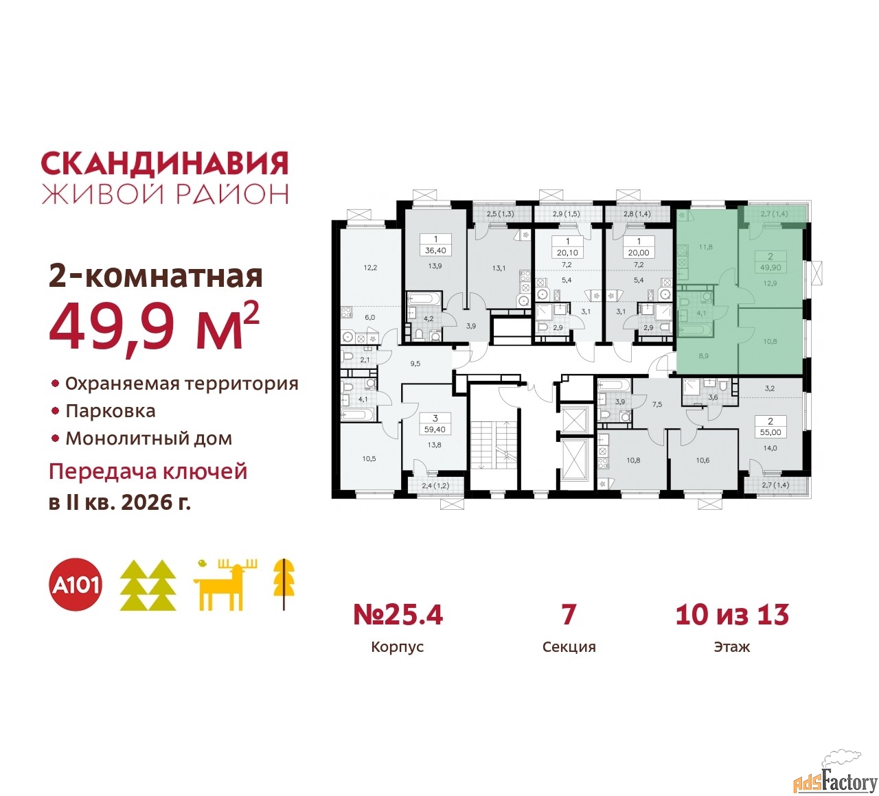 Микрорайон возводится в уже сложившемся районе Новой Москвы, где для детей уже построены детские сады и школа, а для взрослых работают магазины, банки и кафе. (AQID02284225)