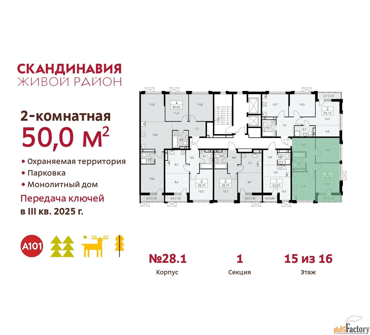 ЖК «Скандинавия» - один из проектов компании А101, известной своей надежностью. Жилой комплекс расположен на юго-западе Москвы в 6-ти километрах от МКАД в окружении Бутовского лесопарка, район Коммунарка. Рядом открылись новые станции метро.