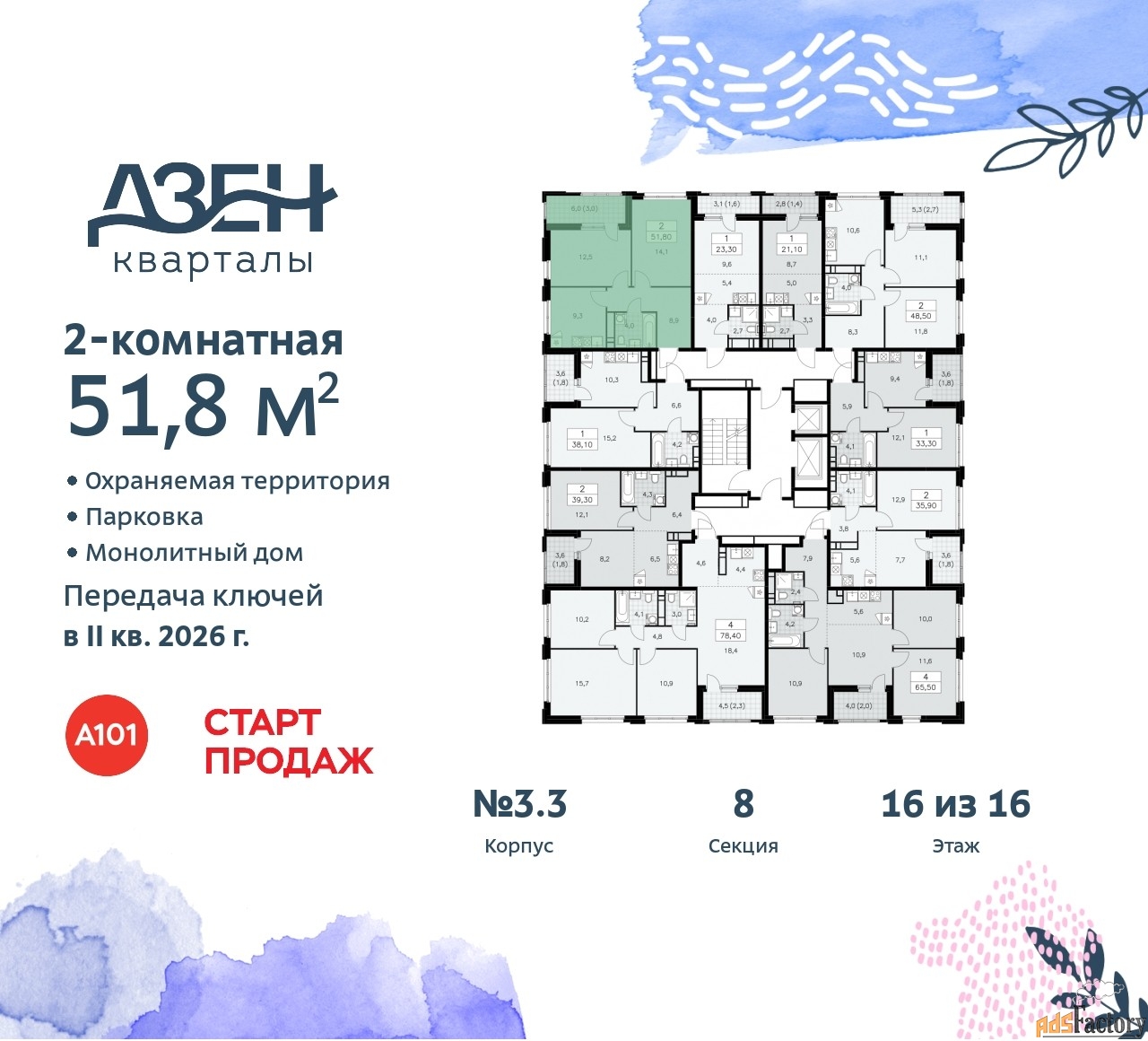 | Общая площадь (кв.м) | 51.8 |