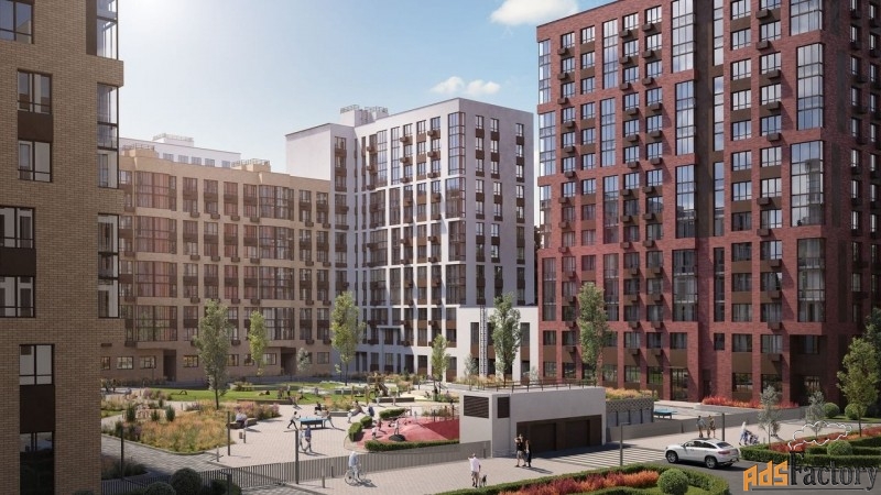 Микрорайон возводится в уже сложившемся районе Новой Москвы, где для детей уже построены детские сады и школа, а для взрослых работают магазины, банки и кафе. (AQID02350883)