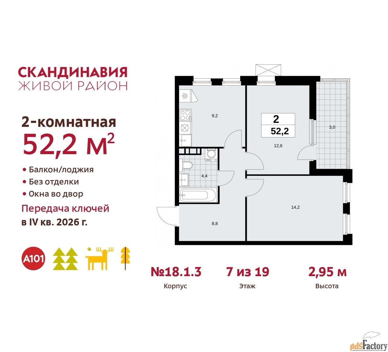 | Общая площадь (кв.м) | 52.2 |