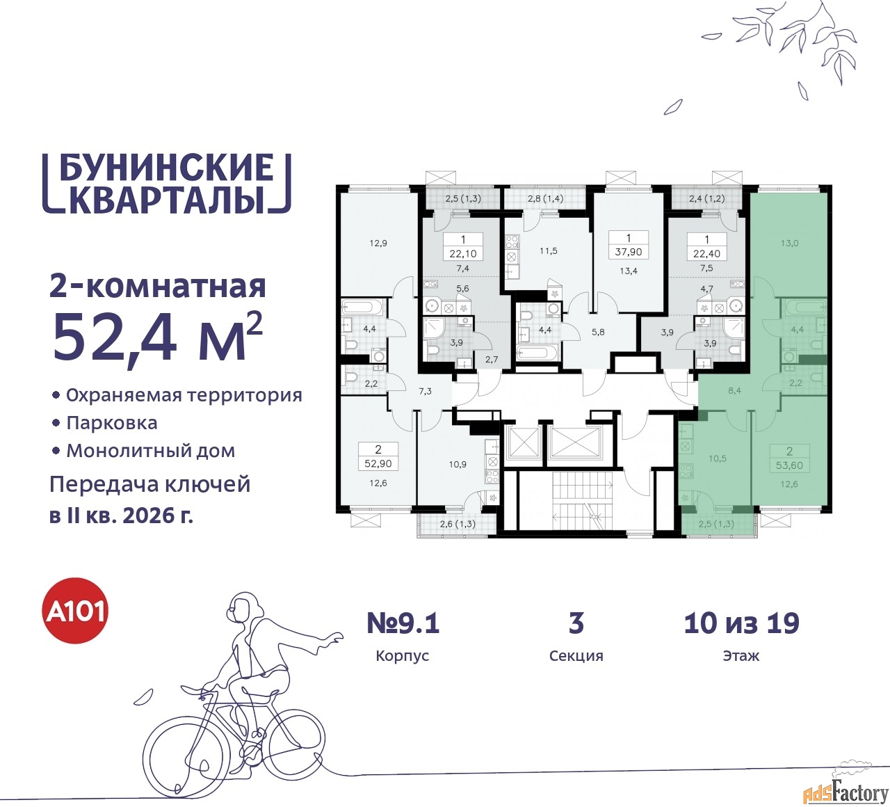 Дом монолитный, многоподъездный, переменной этажности, от 9 до 19 этажей. Квартира находится в 3-й секции высотой 17 этажей в корпусе 9.1. На этаже 5 квартир. В подъезде 1 пассажирский и 1 грузовой лифт. Начало строительства - 4 квартал 2023 года. Окончание строительства - 2 квартал 2026 года. Оформление сделки по договору долевого участия.